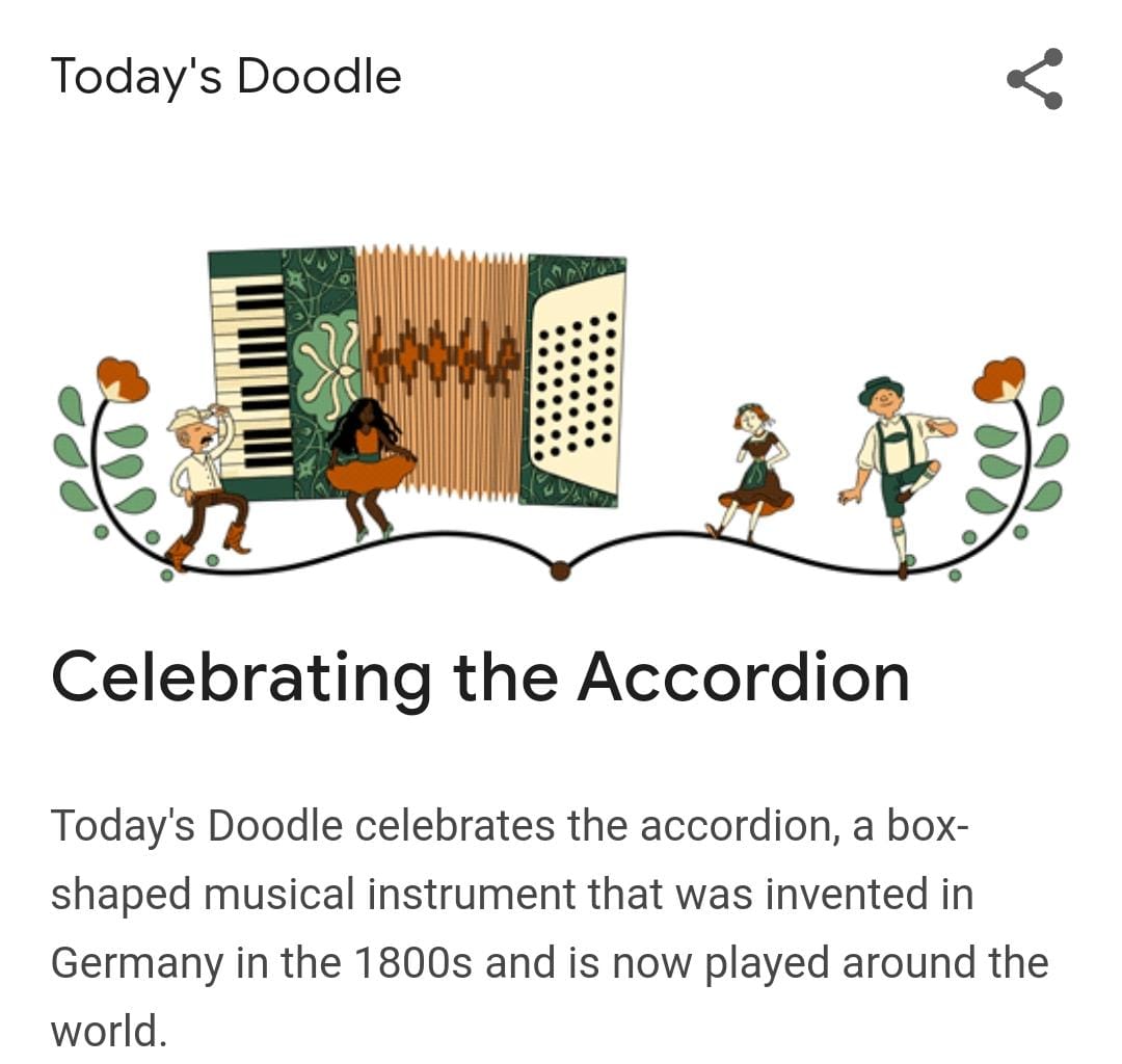 అదే.. అకార్డియన్. చూస్తే.. హార్మోనియం లాగే కనిపించినా… అకార్డియన్ నుంచి బయటకొచ్చే సౌండ్స్ వినసొంపుగా మననును ఆ పాట వెంటే తీసుకెళ్తాయి. అందుకే అకార్డియన్ ఇన్వెన్షన్ జరిగిన రోజు పురస్కరించుకుని.. ఆరోజు గూగుల్ డూడుల్ తో నూ గుర్తు చేసుకుంటూ ఉంటుంది.