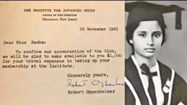 టీ.కే. రాధ కేరళవాసి. ఓ కుగ్రామానికి చెందిన ఈ మహిళ మద్రాస్ ప్రెసిడెన్సీ కళాశాలలో చదువుకున్నారు. భౌతికశాస్త్రంలో అసాధారణ ప్రతిభావంతురాలు. ఆమె ప్రతిభకు గోల్డ్ మెడల్ దక్కింది. ఇండియన్ సైన్స్ లో ఓ లెజెండరీ ఫిగర్ గా అప్పటికే పేరుగాంచిన అల్లాడి రామకృష్ణనే పరిశోధనా బృందంలో సభ్యురాలు. మహిళలంటే ఇంటిపట్టున ఉండి వంటలు వండే పనిలో నిమగ్నమైన నాటి కాలంలో… రాధ పరిశోధనా పత్రాలు మాత్రం అంతర్జాతీయ జర్నల్స్ లో ప్రచురితమయ్యేవి. ప్రపంచవ్యాప్తంగా సైన్స్ లో పరిశోధనలు చేస్తున్న అత్యుత్తమ మేధావులను.. ఓపెన్ హైమర్ ప్రిన్స్టన్ కు ఆహ్వానించాలనుకుంటున్న సమయంలో.. ఆమె ప్రతిభ జర్నల్స్ ద్వారా తెలుసుకున్నాడు. ఓపెన్ హైమర్ దృష్టిని ఆకర్షించాయి రాధ పరిశోధనలు. దాంతో ఓపెన్ హైమర్ నుంచి రాధకు ఆహ్వానమందింది.